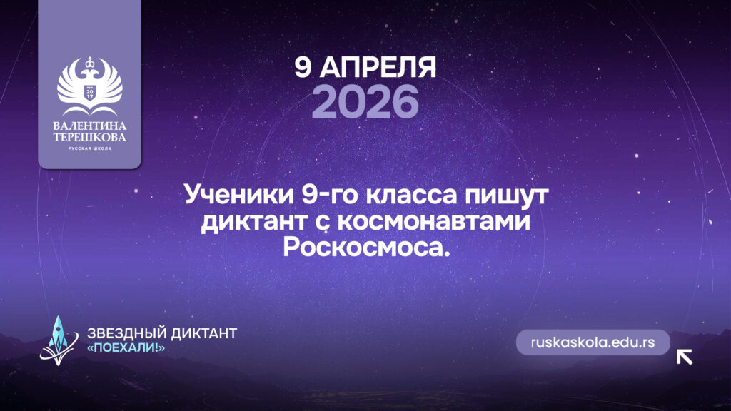 9 апреля ученики 9 класса примут участие в просветительной акции «Звёздный диктант «Поехали!»-2026″.Мероприятие пройдёт в формате открытого урока, который проведут космонавты Роскосмоса. По окончанию диктанта детям на их вопросы ответят космонавты, находящиеся на орбите.